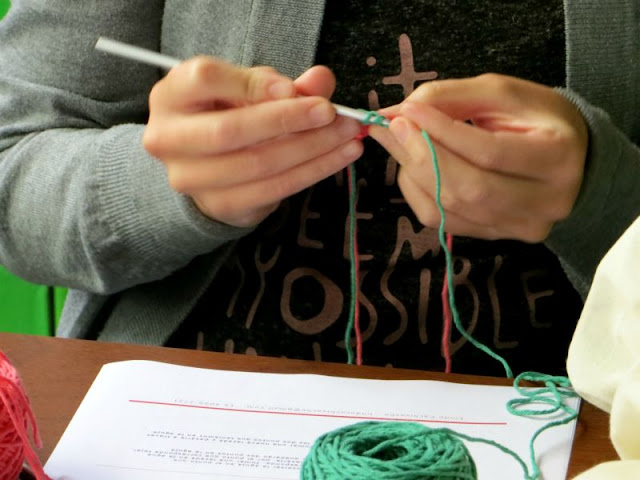 Les dejo aqui una foto (casi postal) de la tarde de tejido compartida el ultimo sábado.